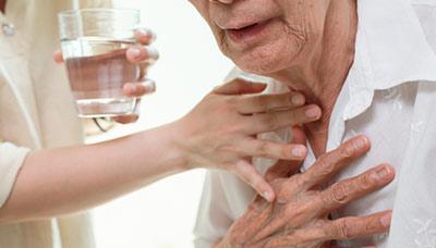 Другой распространённой причиной является дискинезия пищевода, когда мускулатура не справляется с продвижением пищеварительного комка, при этом пища может застревать в горле.